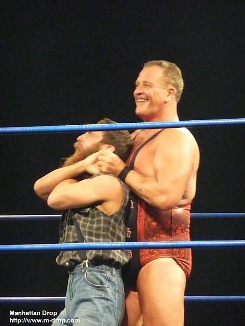 ほんわか路線はいまだ継続中。体の小さいグリズリー・レッドウッドを標的に、アメドラさんがからかったり冗談を言ったりとても楽しそう。チーム・アッパーカットは出す技の9割がアッパーカットという、チーム名に偽りなしのアッパーカット専門チーム。3人で入れ替わり立ち替わりアッパーカットを繰り出す姿はもはや職人技。最後はなんとクローディオがグリズリーにジャイアントスイング100回転をかけ、チーム・アッパーカットの勝利。