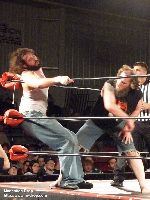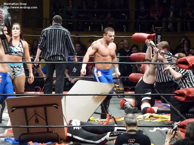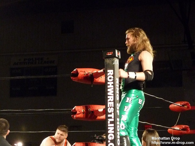 ROHレスリングスクール卒業生の中で一番の出世頭と言っていいレット・タイタス。キャラも定着してきて安心して試合が観られる。モヒカンヘアーに戻したエリック・スティーブンスと減量をして更に逆水平チョップのスピードが速くなったロドリック・ストロングのタッグは技の一つ一つに破壊力があって見ているだけで痛さがこちらまで伝わってくる。最後はレット・タイタスにドクター・ボムを決めたスティーブンス組の勝利。オープニングマッチとしては最適の試合だった。