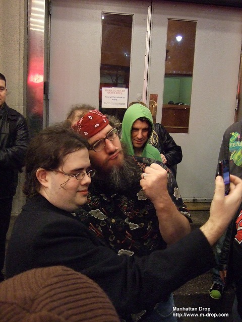 そして最後はもちろんこの人!ROHの打ち上げでタダ酒が飲めるとあって上機嫌なネクロ・ブッチャー氏の登場です。「来月子供が産まれる」と伝えると「グッドジョブ!」と一言。アドバイスを求めると「ミュージック!良い音楽を聴かせてやるんだ。モーツァルトとかだな。あとは本を読んであげるんだ。理解出来なくても良いんだ。声を出して聞かせてやる事が重要なんだ。」と、なんとまあ、マトモすぎる程マトモな答え!顧問、マジ回答ごっちゃんです!