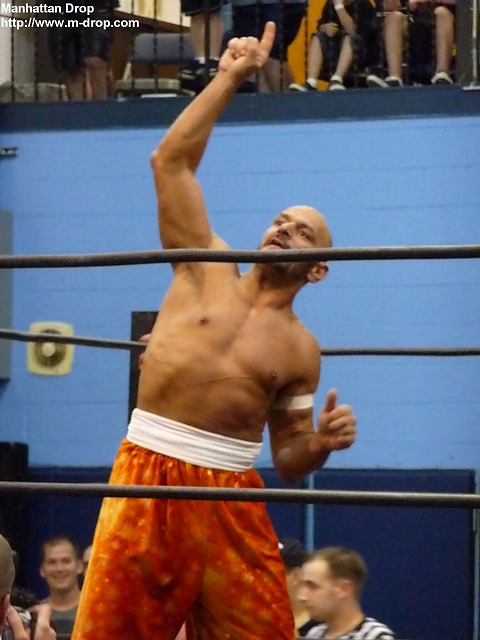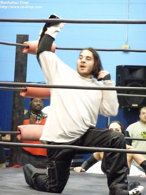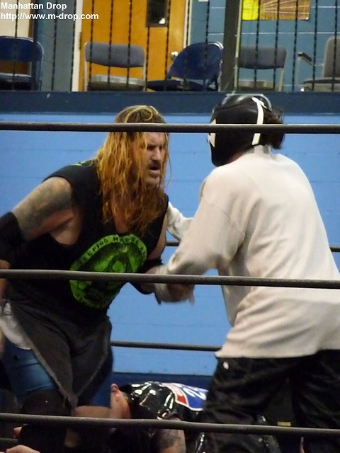 かつて大日本プロレスでジョニー・カジミアと共にバックシート・ボーイズを結成していたトレント・アシッド。デッドプールなるマスクマンとして登場するも試合途中でマスクを剥がされてしまう。で、しかもPWSの王者に。しかし昔の面影はなかった。