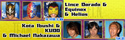 今月27日から開催されるキング・オブ・トリオスのトーナメント一回戦対戦カードが発表された。日本から参戦のチームDDT(KUDO、中澤マイケル、飯伏幸太)は、リンス・ドラド、イクイノックス、ヘリオスからなるチーム『THE FUTURE IS NOW』に決定。