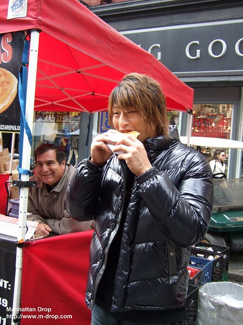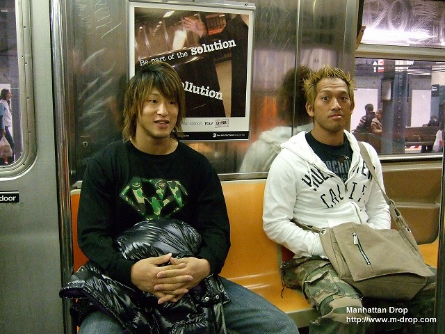 今週の「ぶらりニューヨーク途中下車の旅」はイエローライン地下鉄で行くユニオンスクエア駅までの各駅停車の旅。旅人は、海で年間ベストバウトみたいな最高のプロレスをするのが夢というゴールデンスターこと飯伏幸太さんと、ヌルヌルは世界に通用すると豪語するヌルヌルスターこと中澤原マイケルさんです。果たしてどんな出会いが待っているのでしょうか?さあ出発です、くれぐれも乗り遅れないでくださいよ~。おやおや飯伏さん、ストリートフェスの屋台で立ち食いですか?きのうのハンバーガーみたく食べ過ぎないようにしてくださいね(すべて滝口順平で)。 【文・ジュードーチョップ】