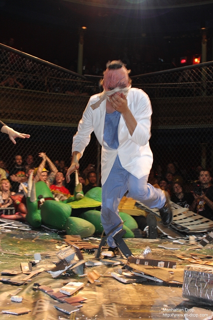 次のセレモニー受賞者はスーパー・ロング。今まで一度も試合に勝ったことのないこの男、ダンスが得意ではっぱ隊の『YATTA!』が入場曲。リング上で踊りまくっていたところに、ドクター・キューブがやってきてお祝いだと言って祝杯を一緒にあげる。観客は皆「飲むなー!」と叫んでいたにも関わらず、素直に飲んでしまうスーパー・ロング。と、キューブが「今のはもちろん毒入りだ。お前に残された時間はあと僅か」とリングを去ってしまう。ここでキューブの新しいモンスター、スーパー・ドゥーパー・ミニオン・13が登場。今まで決まらなかった技もガンガン決まり、自分が強くなったと感じたロングは大喜び!その度に観客からは「時間がない!急げ!」と急かされるものの、次々と技を繰り出し、ミニオン・13相手に好勝負を繰り広げるロング。金網トップに上り、世紀のスーパーダイブを敢行しようとしたところで運悪く毒が回ってしまい、そのままリング状に倒れるように落ちる。運良くそこはミニオン・13の上。レフェリー・ニクマンが3カウントを叩き、この試合ロングの勝利!ロングは初勝利と引換にその命を落としてしまった…。