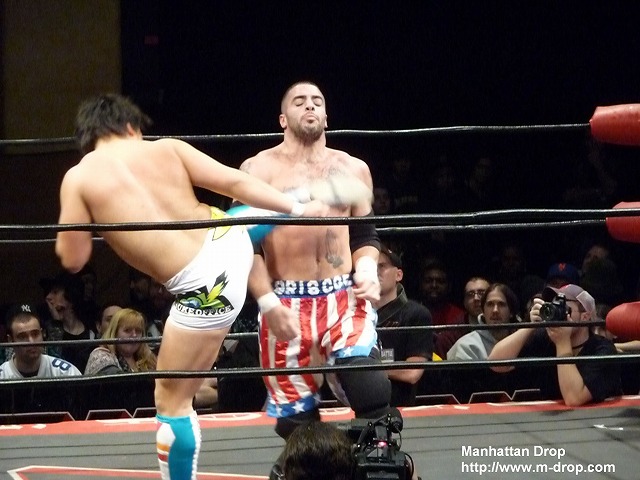 エリック・スティーブンスの顔面に蹴りが入りそのままピン。クリス・ヒーローの勝利。