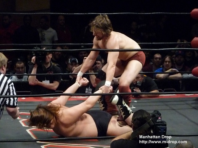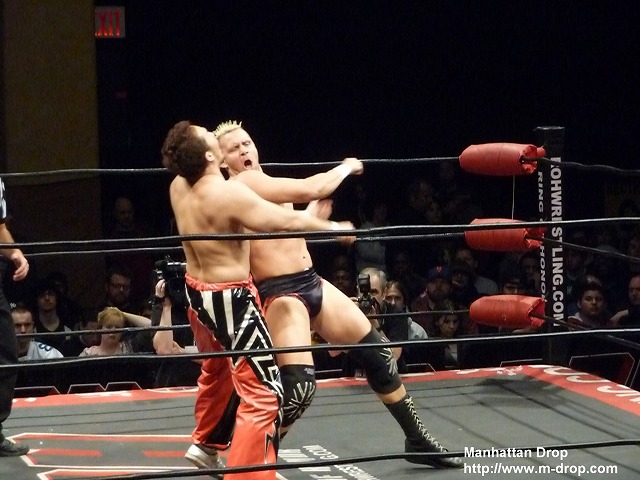NYCストリートファイトマッチ。ロドリック・ストロングがデイヴィー・リチャーズを場外のテーブルにボディースラム。最後はオーブライトが脇固めで潮崎からタップアウトを奪って勝利。