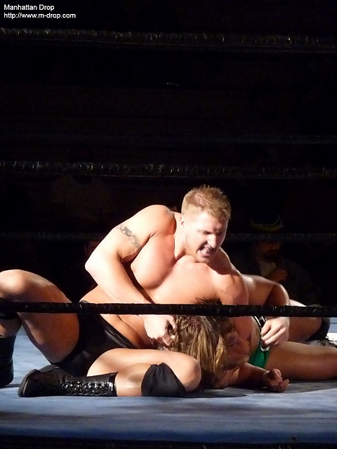 第五試合に出場する予定だったTJPが、同日の昼にフィラデルフィアで行われたwXwの試合中に足を負傷してしまい欠場。これにより急遽カイル・オライリー対ハロウウィキッドが組まれることに。EVOLVE1でのコンディションの良さが目立ったTJPと、勢いにのる新星カイル・オライリーとの試合、裏メインといっても過言ではない好カードだっただけに残念だ。試合は、カイルの鋭い蹴りと関節技、起き上がり小法師式ダブルアームスープレックスで畳込み、最後は急角度のブレーンバスターでハロウウィキッドを撃破。カイル・オライリーの快進撃はまだまだ続く。
